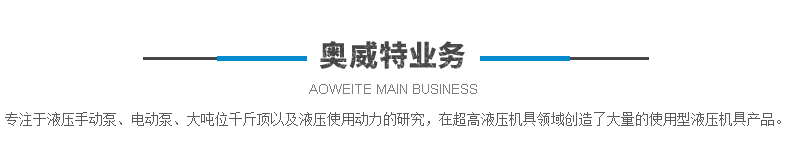 德州奧威特液壓機械有限公司有多年的超高壓元件及設備制造經驗,依托德州精湛的制造工藝和不斷創(chuàng)新的技術,專注于液壓手動泵、電動泵、大噸位千斤頂及拆裝科技以及液壓使用動力的研究,在超高液壓機具領域不斷研發(fā),創(chuàng)造了大量的使用型液壓機具產品。